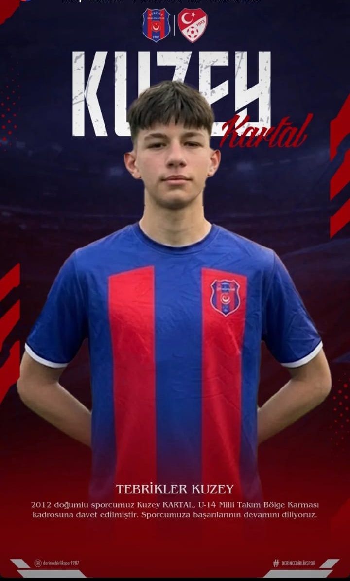 İlimizin köklü takımları arasında yer alan Derince Birlikspor altyapısında futbol eğitimine devam eden 2010 doğumlu Kaan Kansız'dan sonra 2012 doğumlu başarılı oyuncu Kuzey Kartal'ında Milli davet alması ailesinde ve takımında çok büyük sevinç oluştu