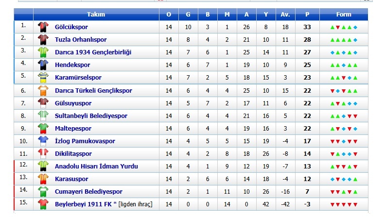 Temsilcilerimizden Darıca 1934 GB ilk devreyi 27 puanla üçüncü, Karamürselspor 23 puanla beşinci, Darıca Türkeli Gençlikspor ise 22 puanla altıncı sırada tamamladı.