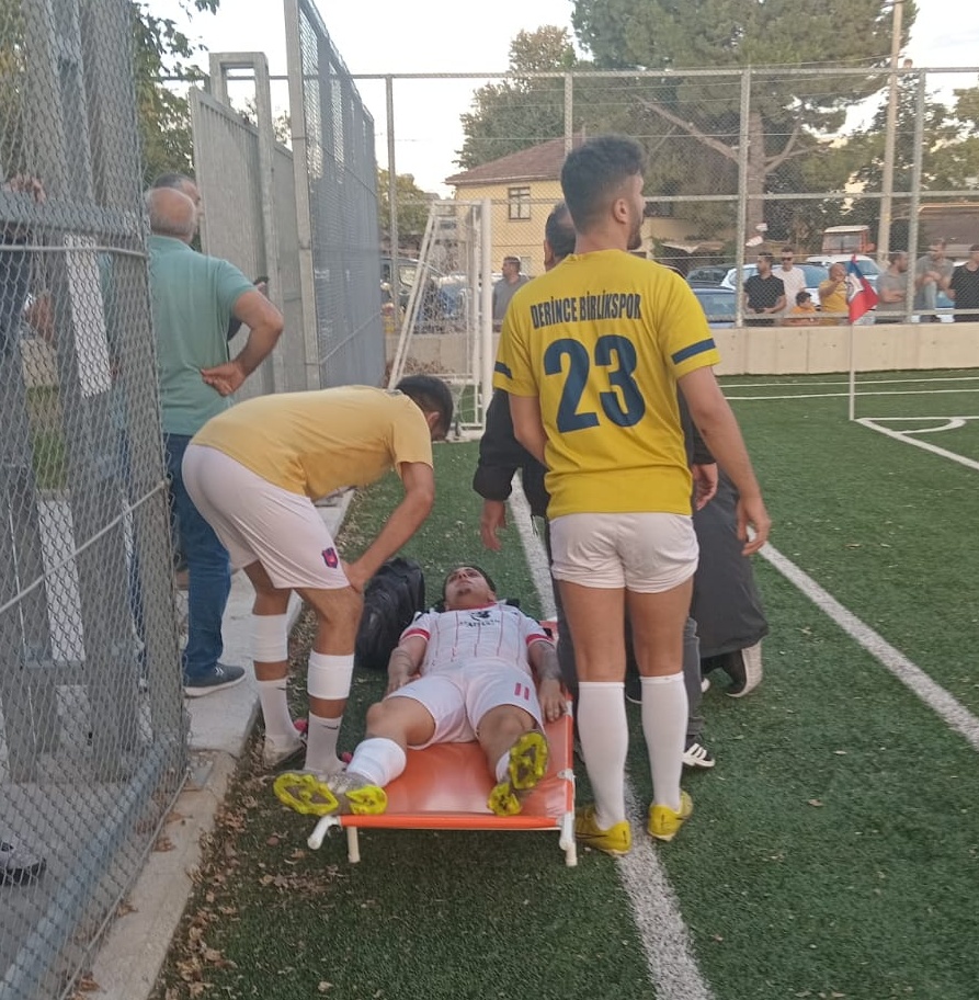 30.dk Derince Birlikspor'un sağ taraftan gelişen atağında Berkant Bayer ikili mücadelede yerde kaldı.Genç oyuncunun omuzunun çıktığı açıklandı.