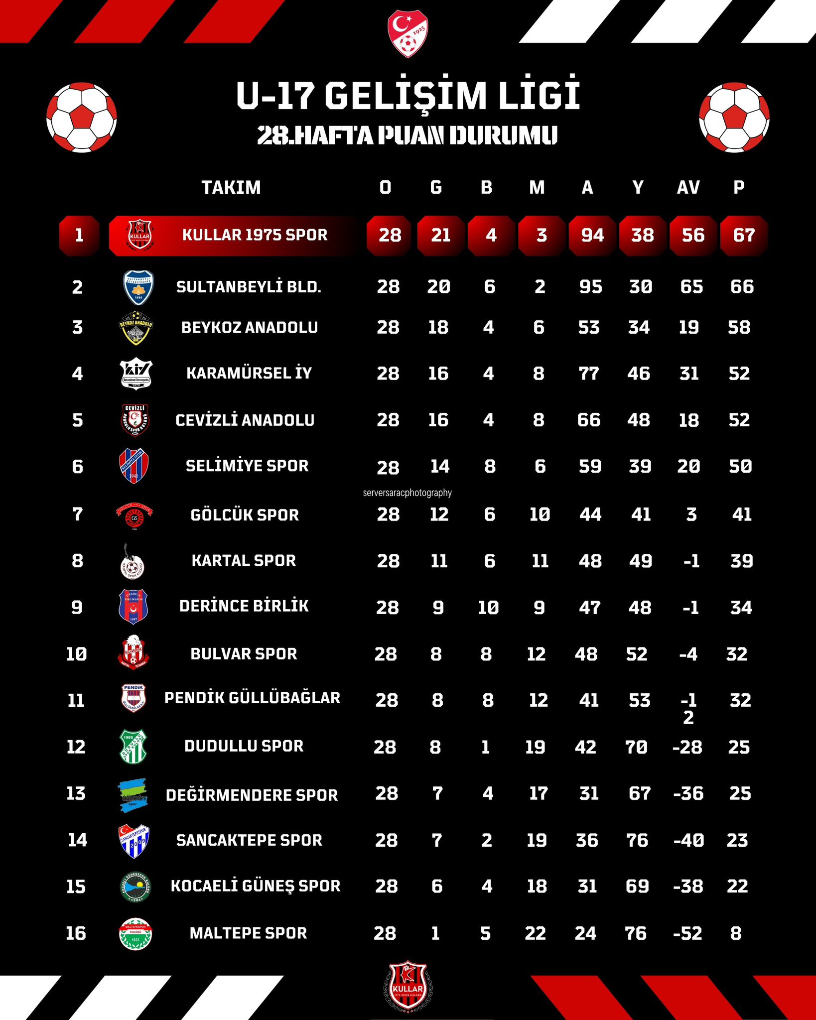 Kullar 1975 Spor U17 takımı, Gelişim Liginde bitime iki maç en yakın rakibi Sultanbeyli Belediyespor'un bir puan önünde şampiyonluğa çok yakın.