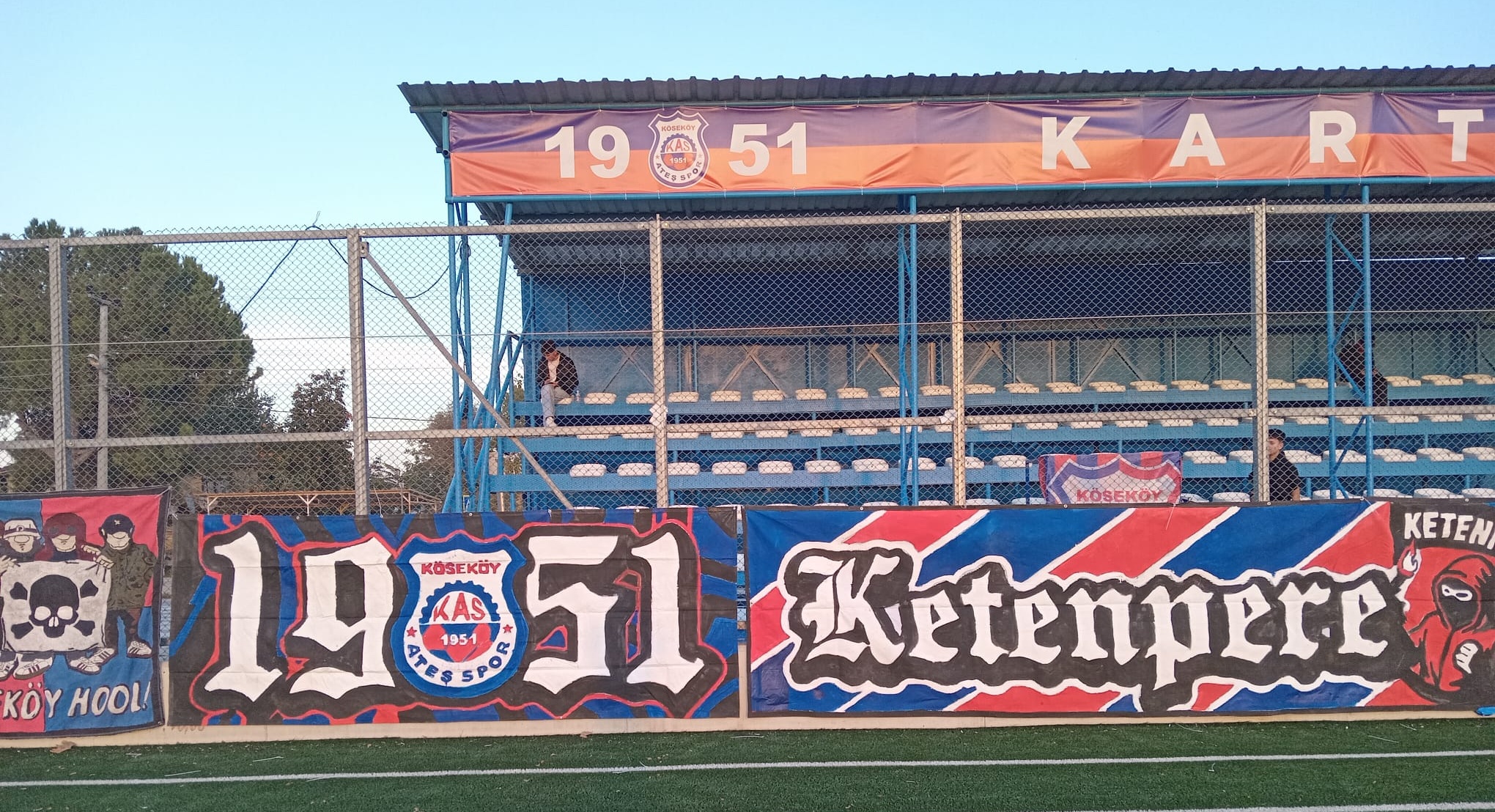 Köseköy Ateşspor'lu genç taraftarlar maç öncesinde sahayı pankartlarla süslediler.